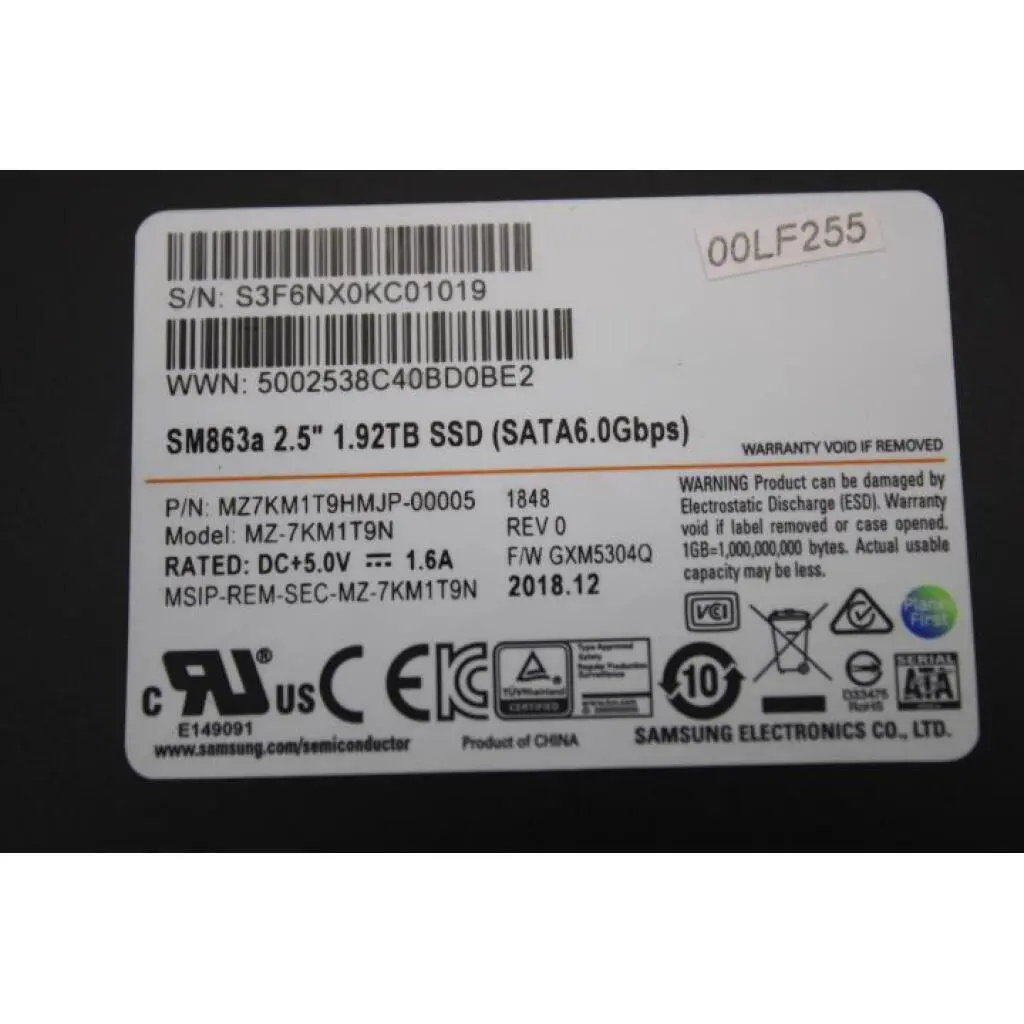 Sm SM863 SATA6G 2.5 1.92T