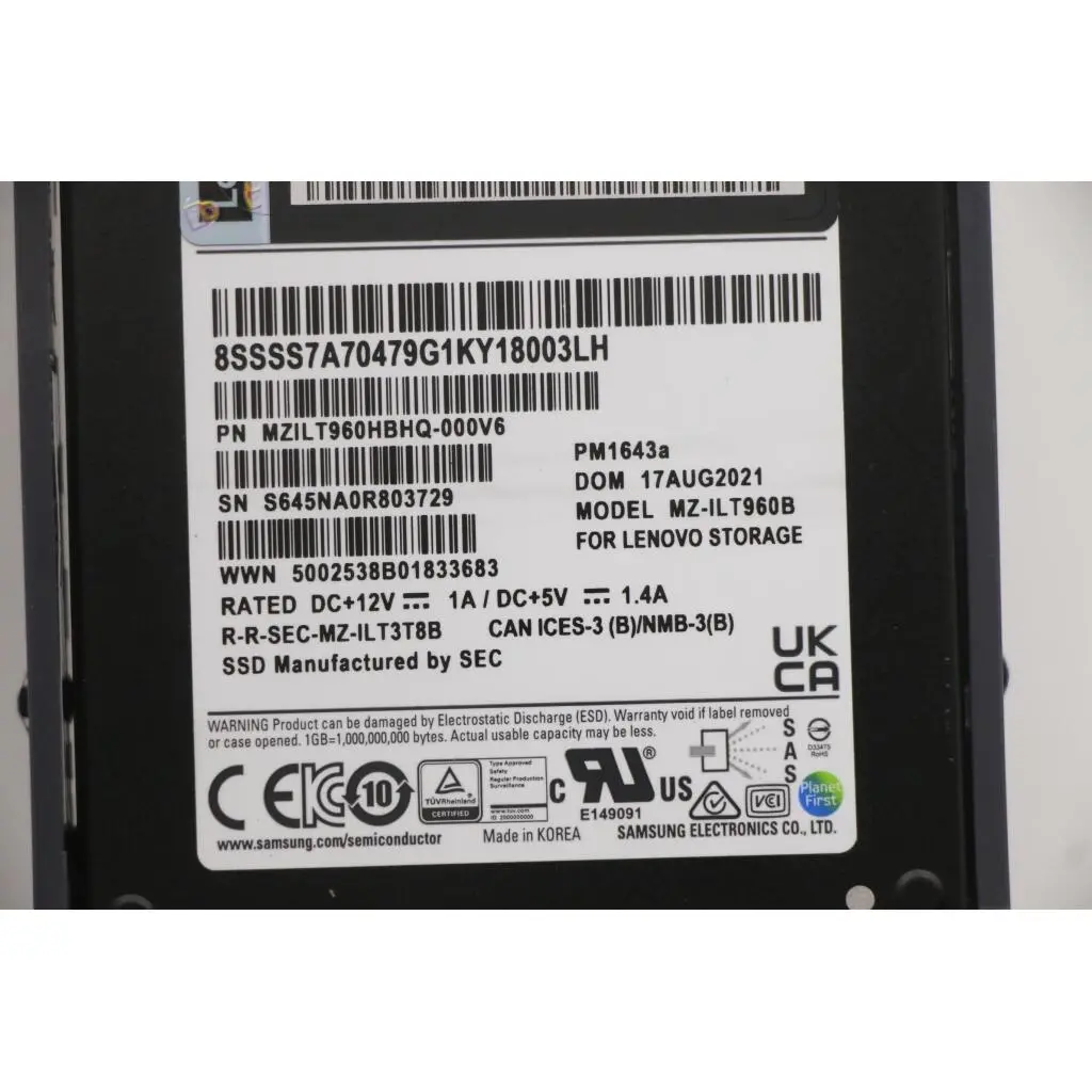 SSD Assembly, 960GB 12Gb SAS 2.5″ 1DWPD, Hot Swap, non-self encrypting with drive tray
