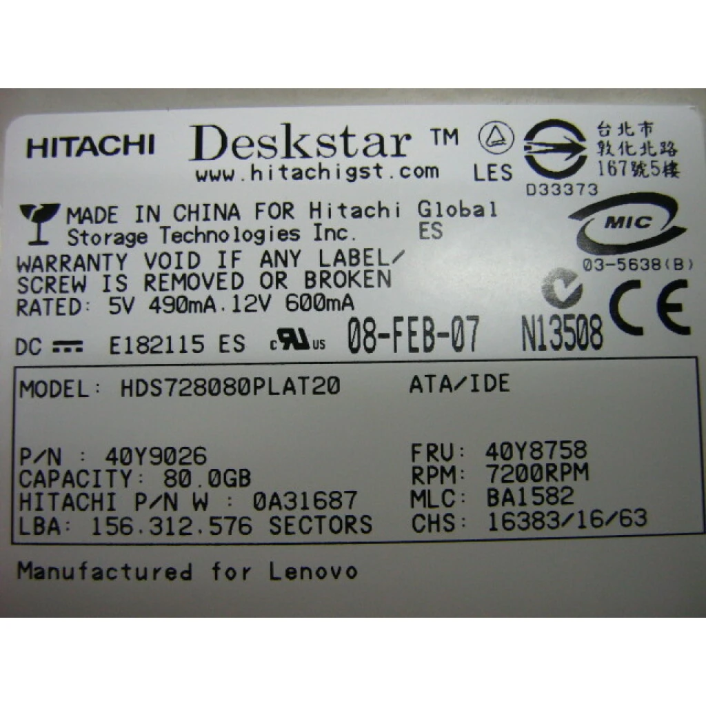 FRU,80GB PATA