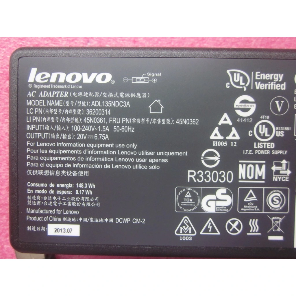 135W AC Adapter, Slim Tip, 100 – 240 V, 50/60 Hz, 500 g