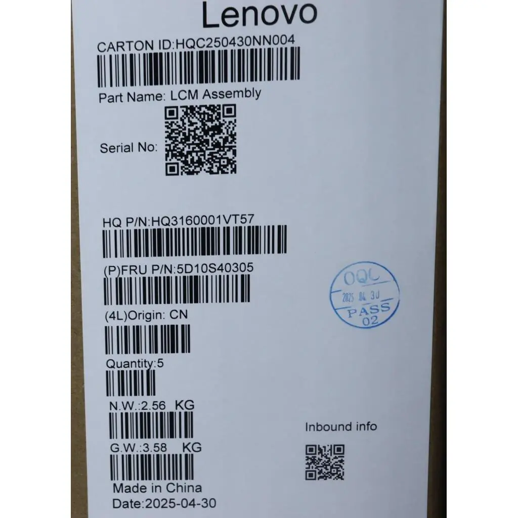 Lenovo LCD Module, 14″, WUXGA, Touch, Glare, Anti-smudge, OLED, 400nit, 100%DCI-P3, Seashell
