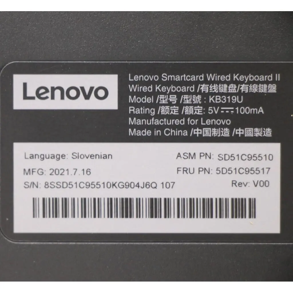 Lenovo Smartcard Wired Keyboard,Slovenian