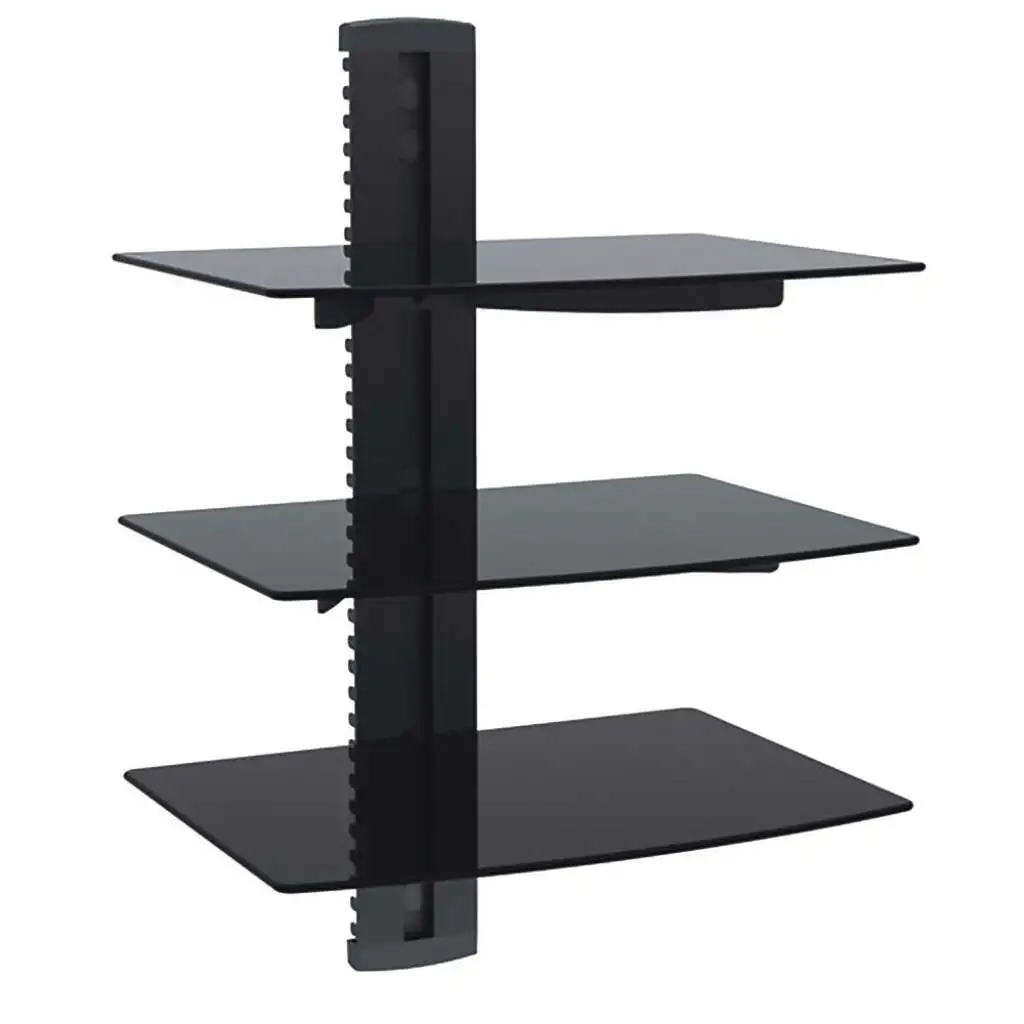 Media Player – A/V Component Wall Mount Triple Shelf, Glass – Black