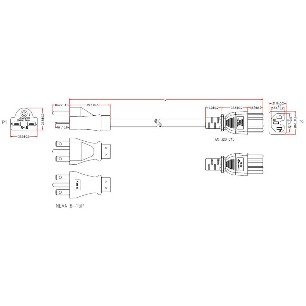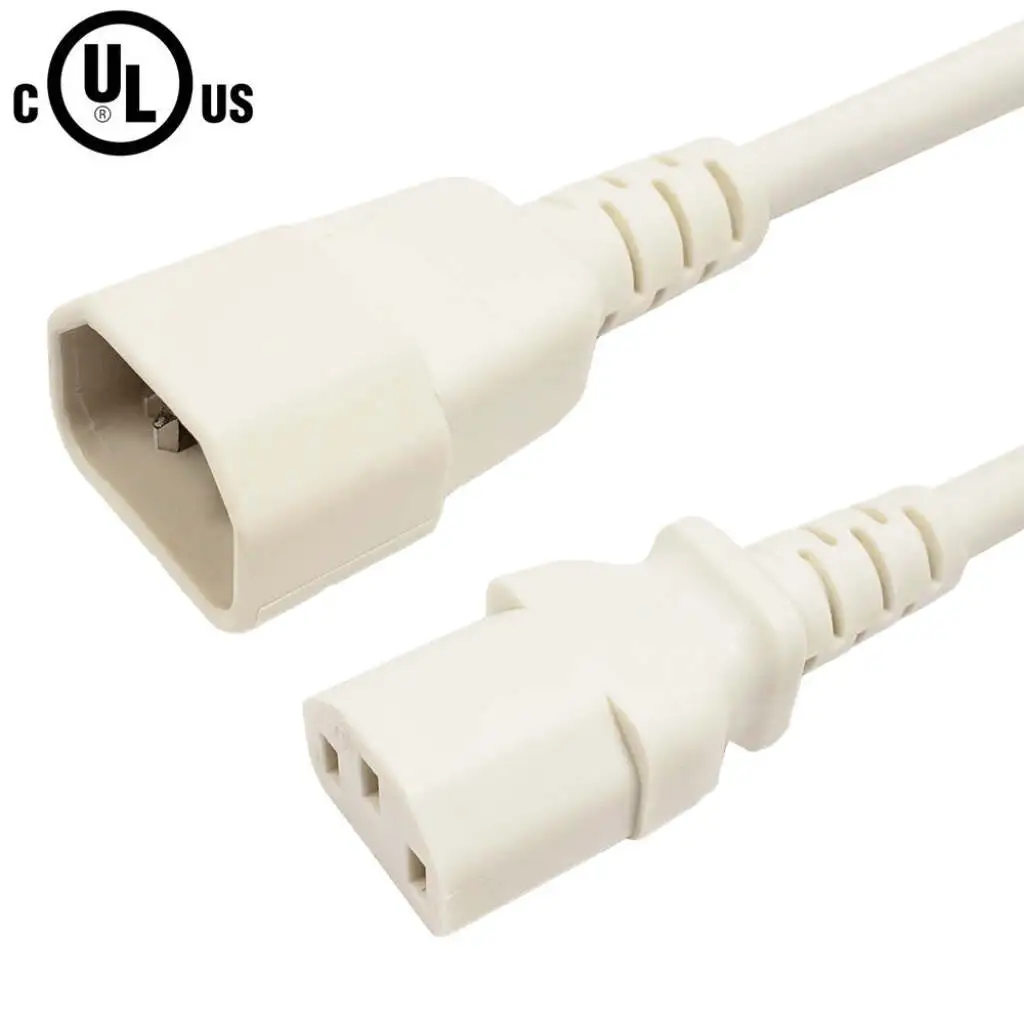 IEC C13 to IEC C14 Power Cable – SJT Jacket – 18AWG (10A 250V) – 15ft – White