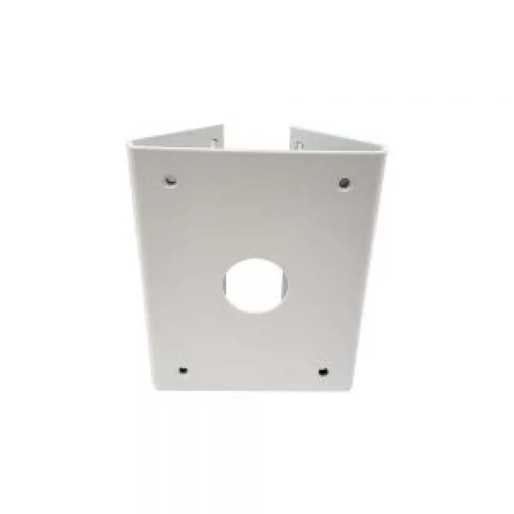 This junction box mounting bracket is designed to mount a dome camera. It has side and bottom inlets for easier installation. It is constructed of treated aluminum alloy material for better protection against the elements in outdoor applications.